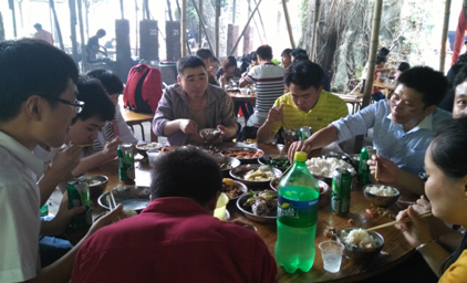 中午,自助野炊粉墨上場,平時裝機調(diào)試,玩電腦的手,此時又再次各顯神通,燒火的燒火,洗菜的洗菜,各種食材在通發(fā)各路“神仙”的擺弄下,變成一桌桌美味佳肴!香氣四溢,果然集體力量大啊!
