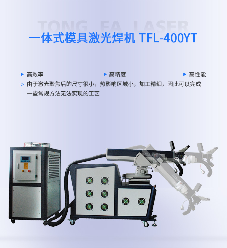 通發(fā)激光一體式模具激光焊機(jī)TFL-400YT是一款多種功能融合一體的新型模具激光焊接機(jī),針對特大型塑料模具激光焊、中型注塑模具激光燒焊、小型塑膠模具激光補(bǔ)焊、壓鑄模激光補(bǔ)焊具等各類模具可實(shí)現(xiàn)超精密修復(fù),幫您解決大型汽車模具修復(fù)難題,不需要模具移動,電動工作臺與立體旋轉(zhuǎn)激光頭完美結(jié)合,操作桿控制運(yùn)動移動實(shí)現(xiàn)輕松激光修復(fù)大型模具,同時也保留了傳統(tǒng)手動工作臺超精密修復(fù)模具功能。